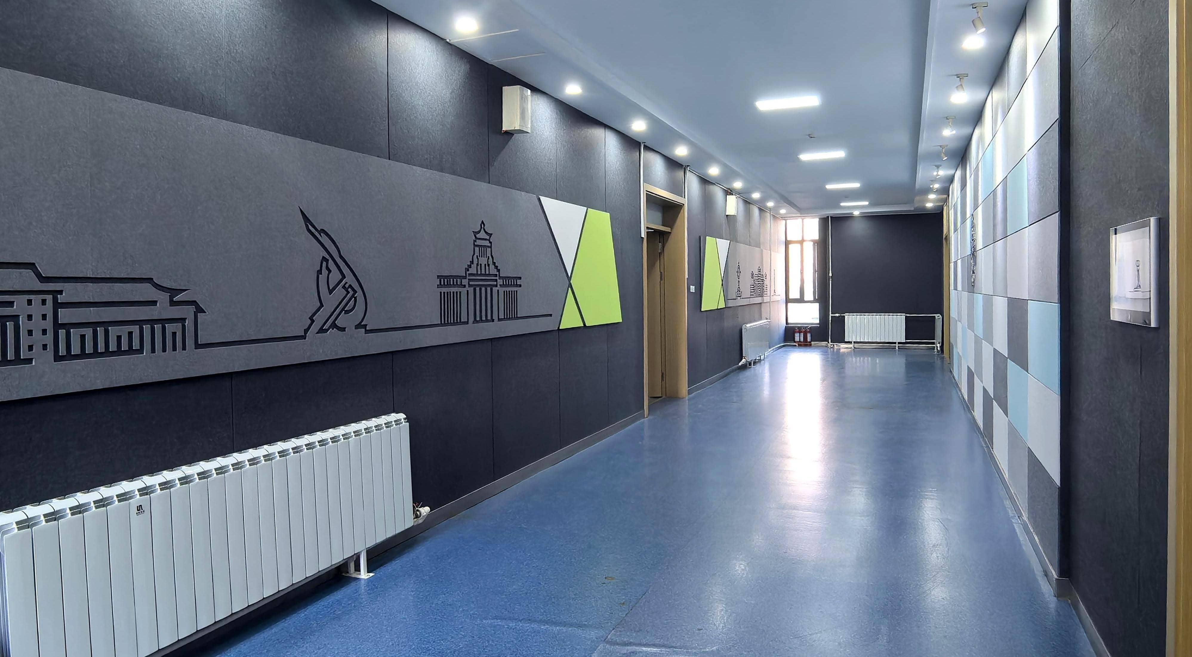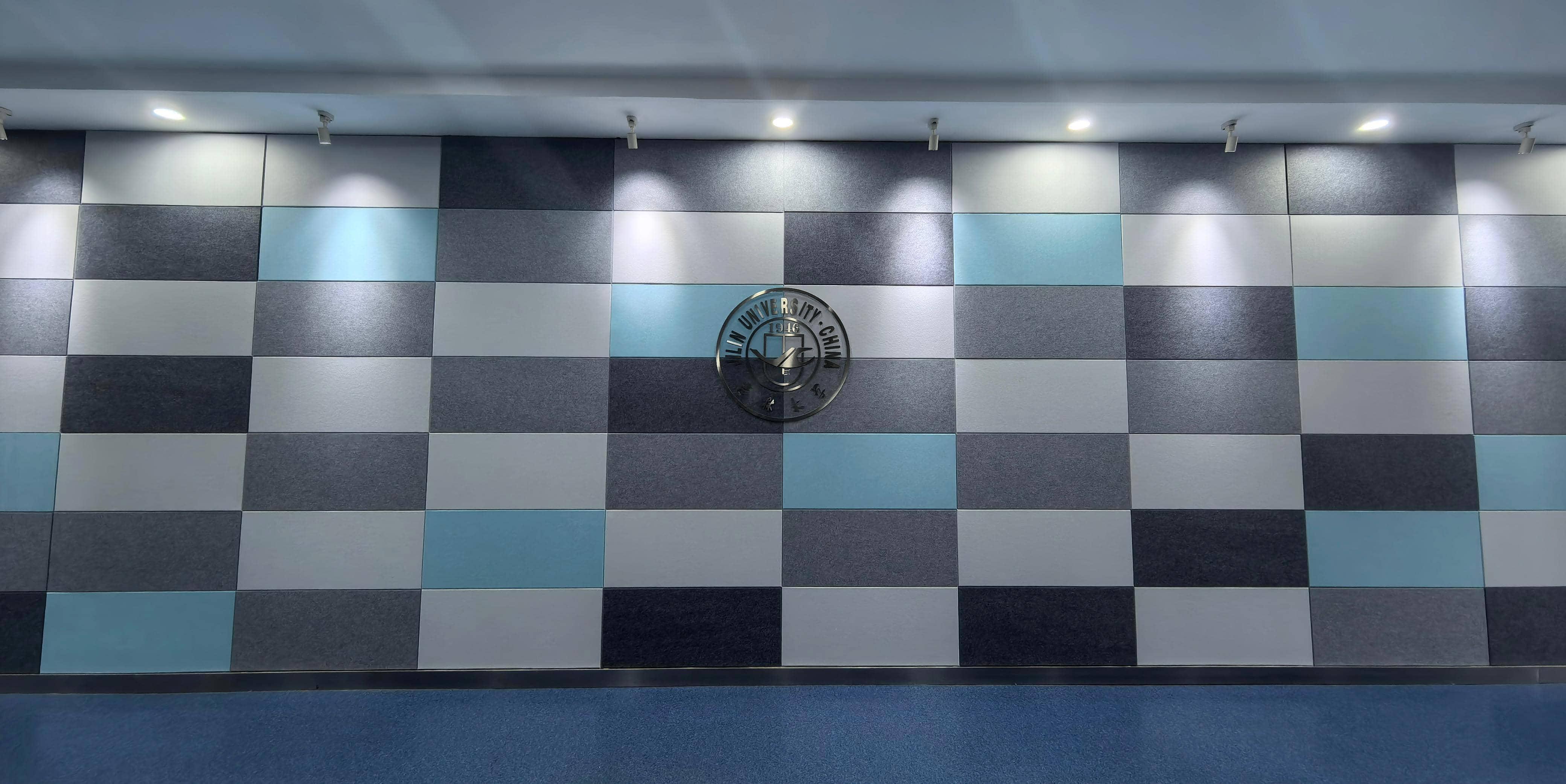 2025年9月6日,suncitygroup太阳成集团在本科生院及东区办公室的指导下,接到南岭校区逸夫教学楼走廊改造专项工作,设计系迅速组建由师生组成的实践教学团队,高效完成此次改造任务。经过前期多次现场勘察、开会讨论设计方案后,在72小时内完成包括:电梯间形象墙、走廊文化角、会议厅走廊空间三处改造项目的视觉设计方案。通过采用定制环保材料进行现场拼装的方式,既能保证艺术品质又能缩短工期。自9月19日起,实践教学团队与施工方开启“白+黑”工作模式。连续6昼夜完成近300平米墙面的艺术处理和多组装饰灯箱的安装调试。9月25日,南岭校区逸夫教学楼走廊文化建设改造项目全面竣工,焕然一新的走廊空间成为校园美育教学实践与学科精神传承的创新载体。