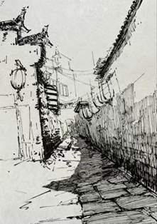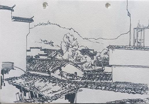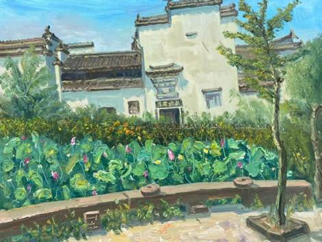 , 师生赴卢村开展考察,卢村依山傍水,徽派古村落韵味浓郁。马头墙错落有致,木雕楼精雕细琢,溪流穿村而过。写生取景可聚焦古建细节与田园风光,感受徽派建筑与自然相融的独特美学,为毕业创作积累了丰富的鲜活素材。在后续的休整与深化创作阶段,在带队教师的指导下进行创作复盘与交流,将沿途所见所感转化为笔下的艺术表达。