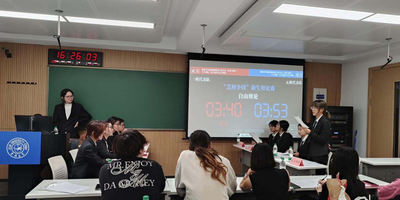 复赛过程,设计一班、二班的辩题为“知道的越多越像世界的宠儿/孤儿”,同学们从知识的定义,拓展到多个领域的广泛涉猎和深入理解。设计三班和绘画五班的辩题为“宿命论可/不可悲”,双方用《活着》、《俄狄浦斯王》等著作为例子,不仅支撑了论点,也丰富了辩论内涵。现场氛围热烈有序,观众们见证了思维与智慧的碰撞。经过层层比拼,设计二班、三班最终脱颖而出进入决赛。