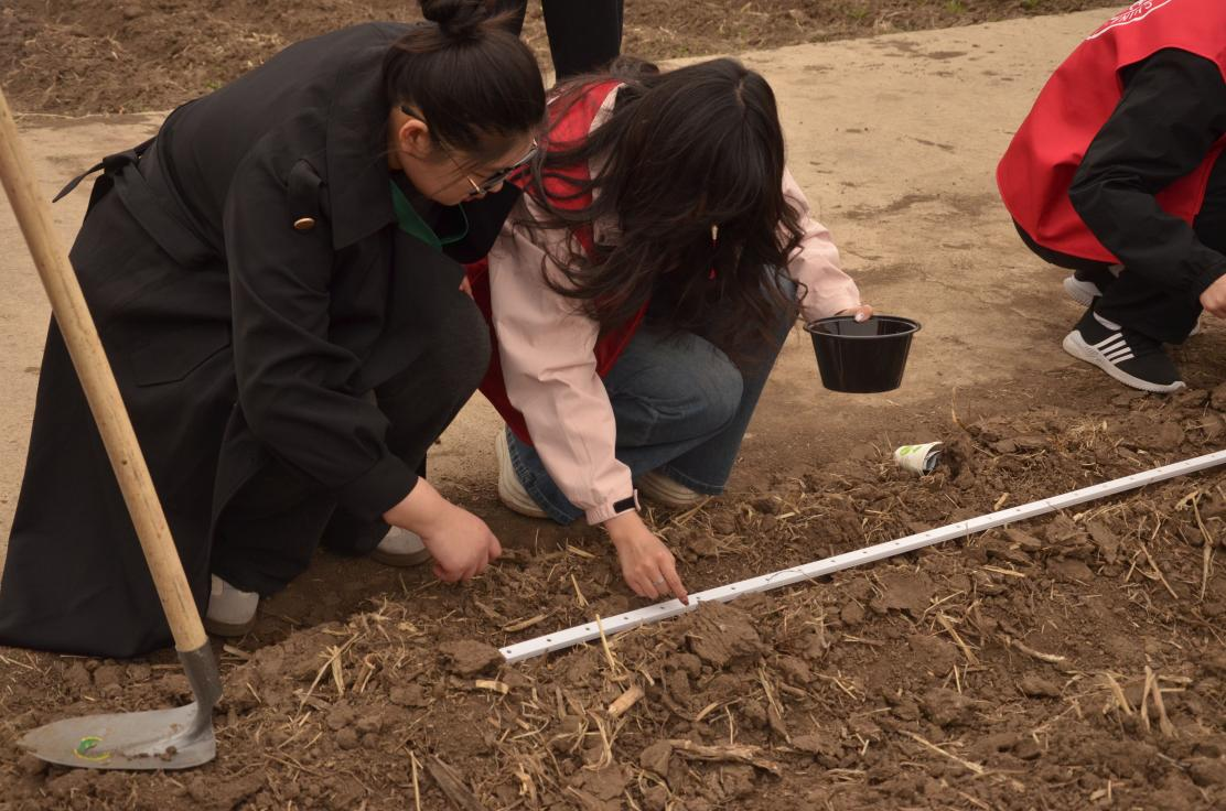 最后开展了农事劳动实践。在植物科学公司师生指导带领下,同学们学习了点播器和手持播种器的使用。同时划分了小组劳动区域,明确了劳动分工,进行了锄草、耕地、播种等一系列的农业实践活动。